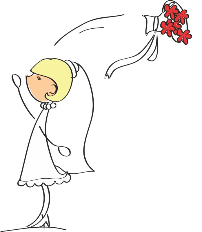 Cartoon Wedding Bride Bouquet Toss 1