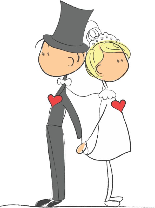 Cartoon Wedding Groom Bride Holding Hands 2